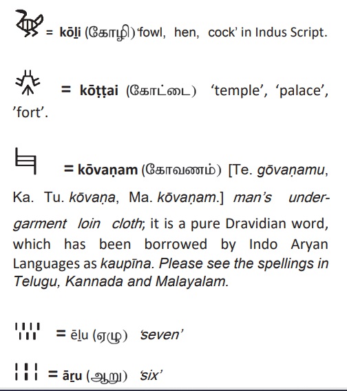 Some excerpts from the book "Indus Script:Deciphering the Harappan Language and Grammar" And "சிந்துவெளி செந்தமிழ்"